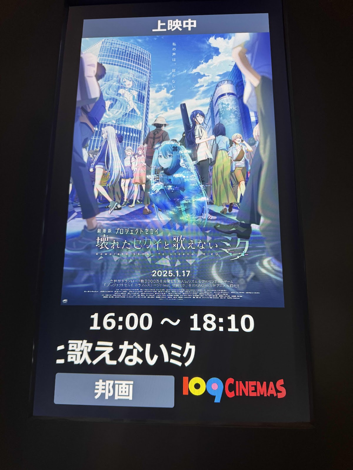 そもそも今頃初音ミクの映画なんかやるのかと思ってスルーしようとしたら、入場前の立看板前にファンらしい人達が屯っていて小さい部屋しか無いながらも人の入りが多いので気にはなっていた。